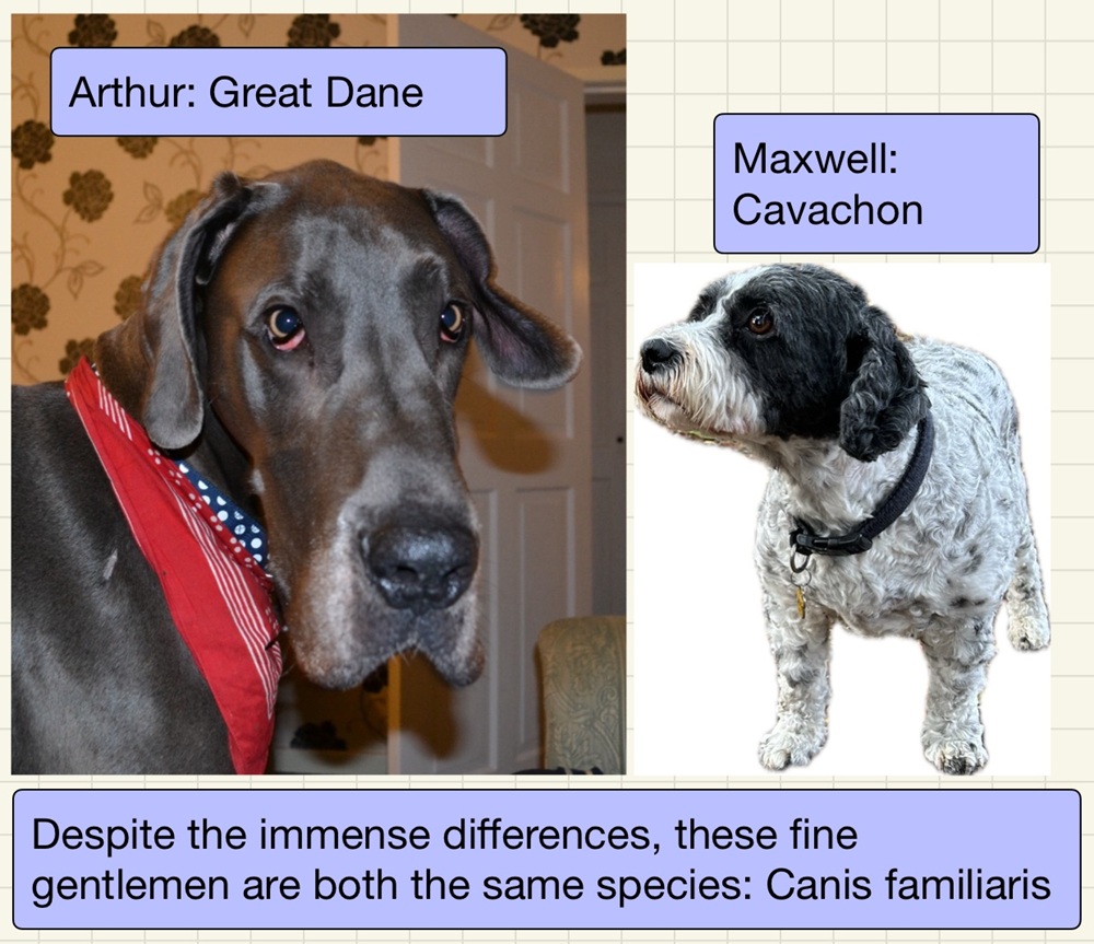 We begin with answering what is variation within a species? Once we have the complete list including height and eye colour, we can identify the differences between discontinuous variation (eye colour) and continuous variation (height). Now is the time to work on our data skills, we can study variation within the class and collect data on other species including everyone's pet dog.